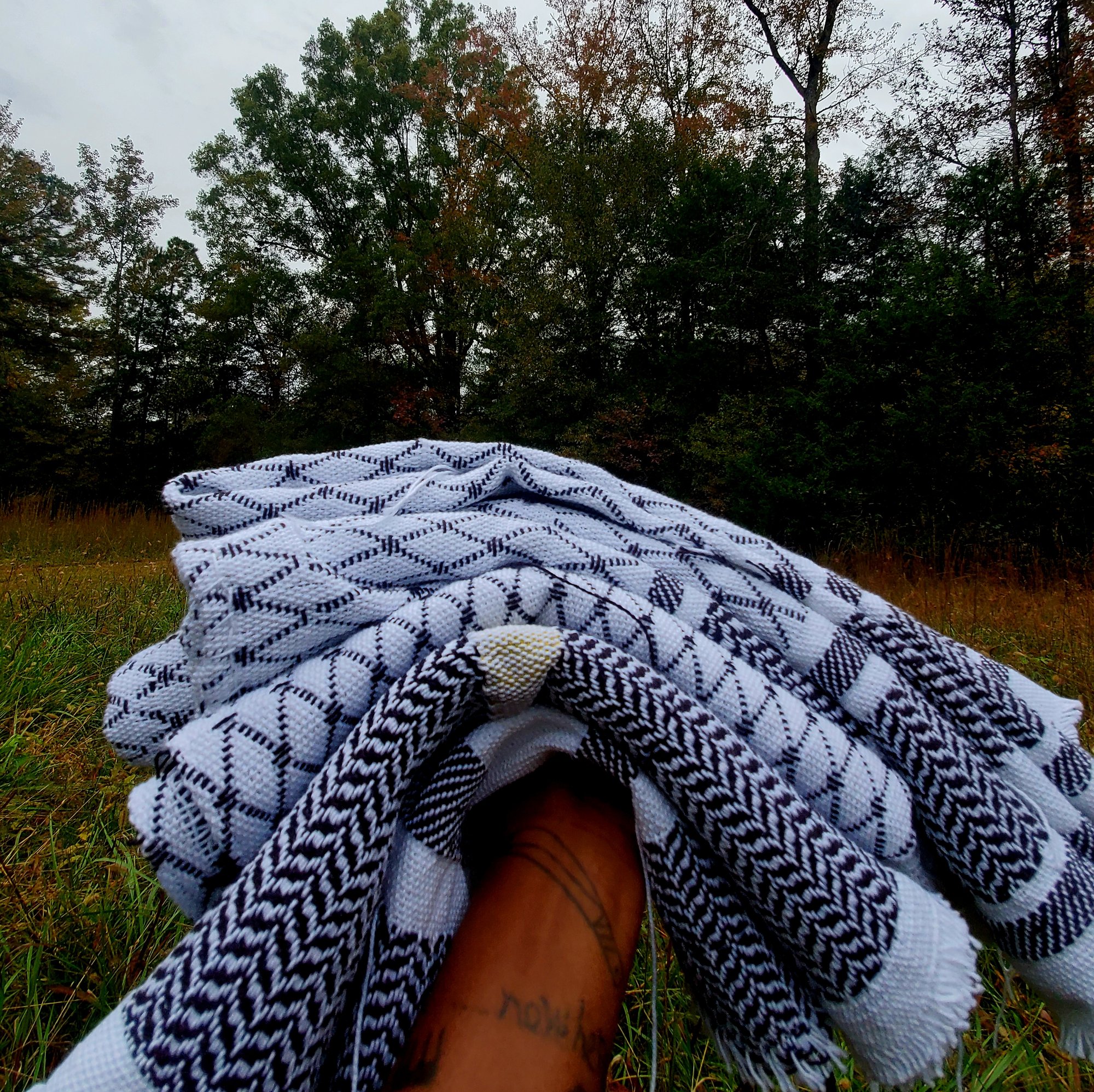 Handmade cloth woven and finished in Burlington-Durham, NC by adé of dìèdìè textiles. Proceeds go to support Palestinian families rebuilding and recovering from genocide and illegal occupation by Isr*el.